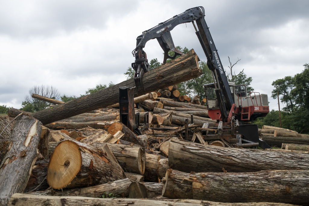 A worker operates machinery to cut logs in Moundsville, West Virginia Bloomberg/Getty Images