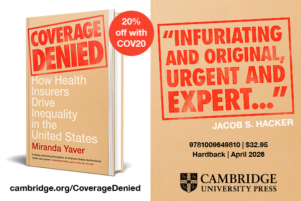 Tens of millions of medical claims are denied every year, yet little scholarly attention has been paid to their scale or impact on patients’ health and financial security. Combining compelling patient and physician narratives with original survey data, Miranda Yaver shows how denials deepen health and economic inequality in her new book, Coverage Denied.