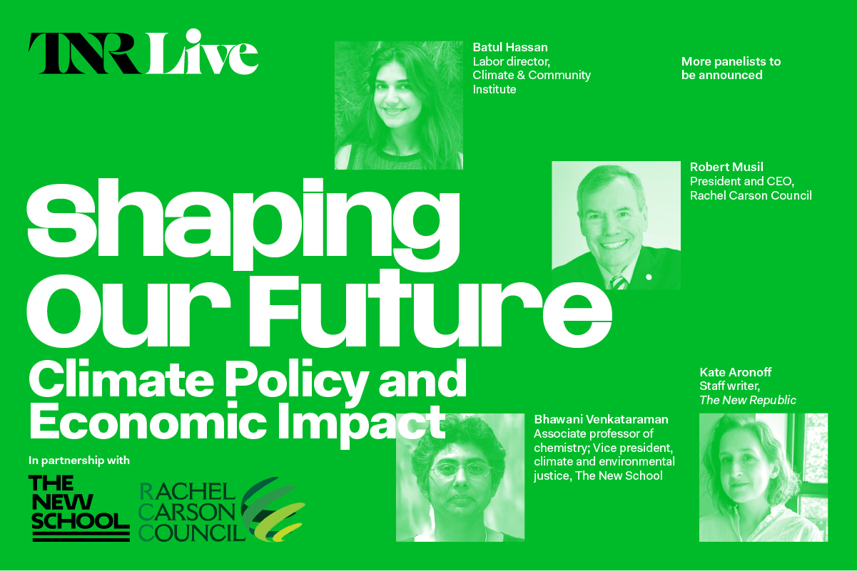 During NYC Climate Week, The New Republic, The New School, and the Rachel Carson Council are hosting a sit-down with climate thought leaders and activists on bold policy solutions, economic challenges, and innovative strategies for more resilient and equitable cities. Join us for free in person or on the livestream.