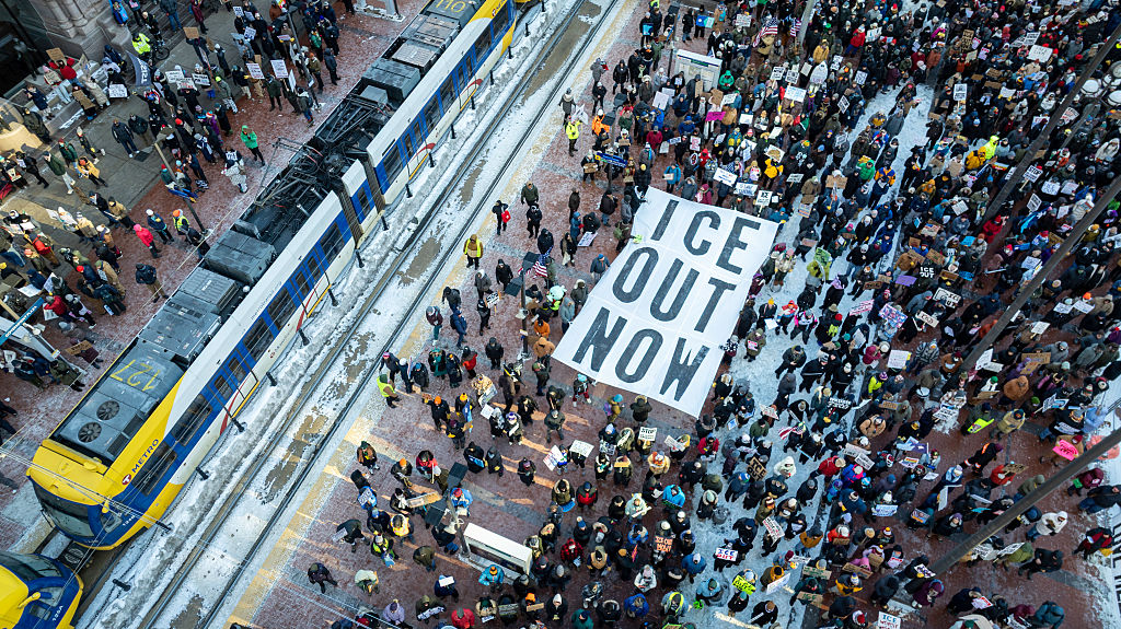 Demonstrators calling for an end to ICE operations in Minnesota on January 30